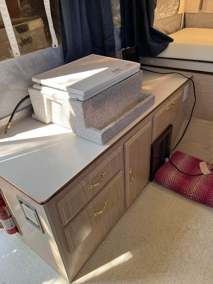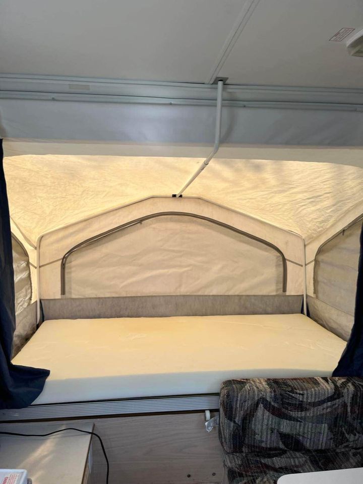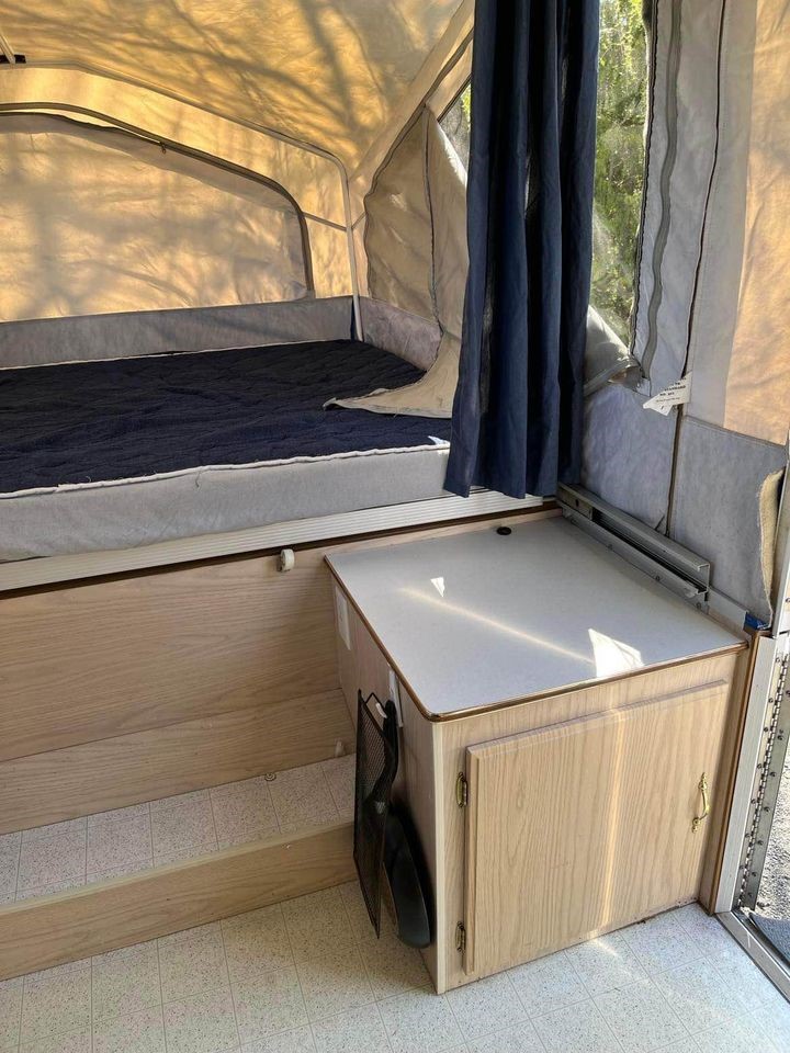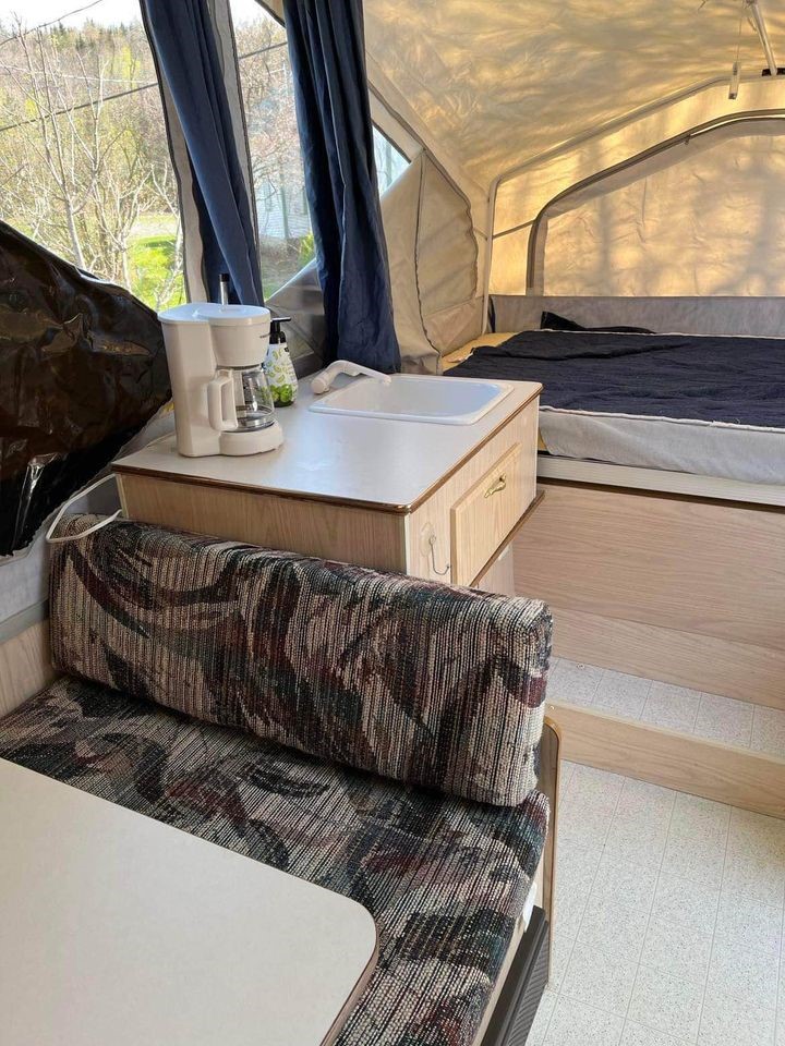 1 lit double (54’’) 1 lit simple (39’’) – table qui se transforme en lit 1 lit simple (39’’) 1 Réfrigérateur, poêle, lavabo et chauffage